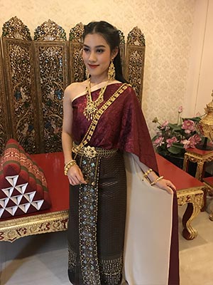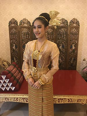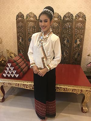 * ジョンガベーンというタイ舞踊の練習着をつける